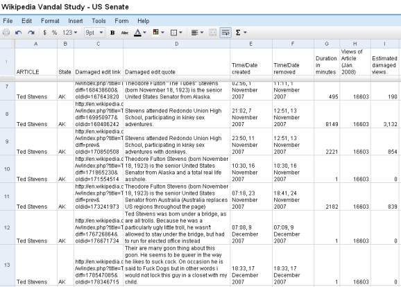 Screenshot of Wikipedia Senator vandalism study